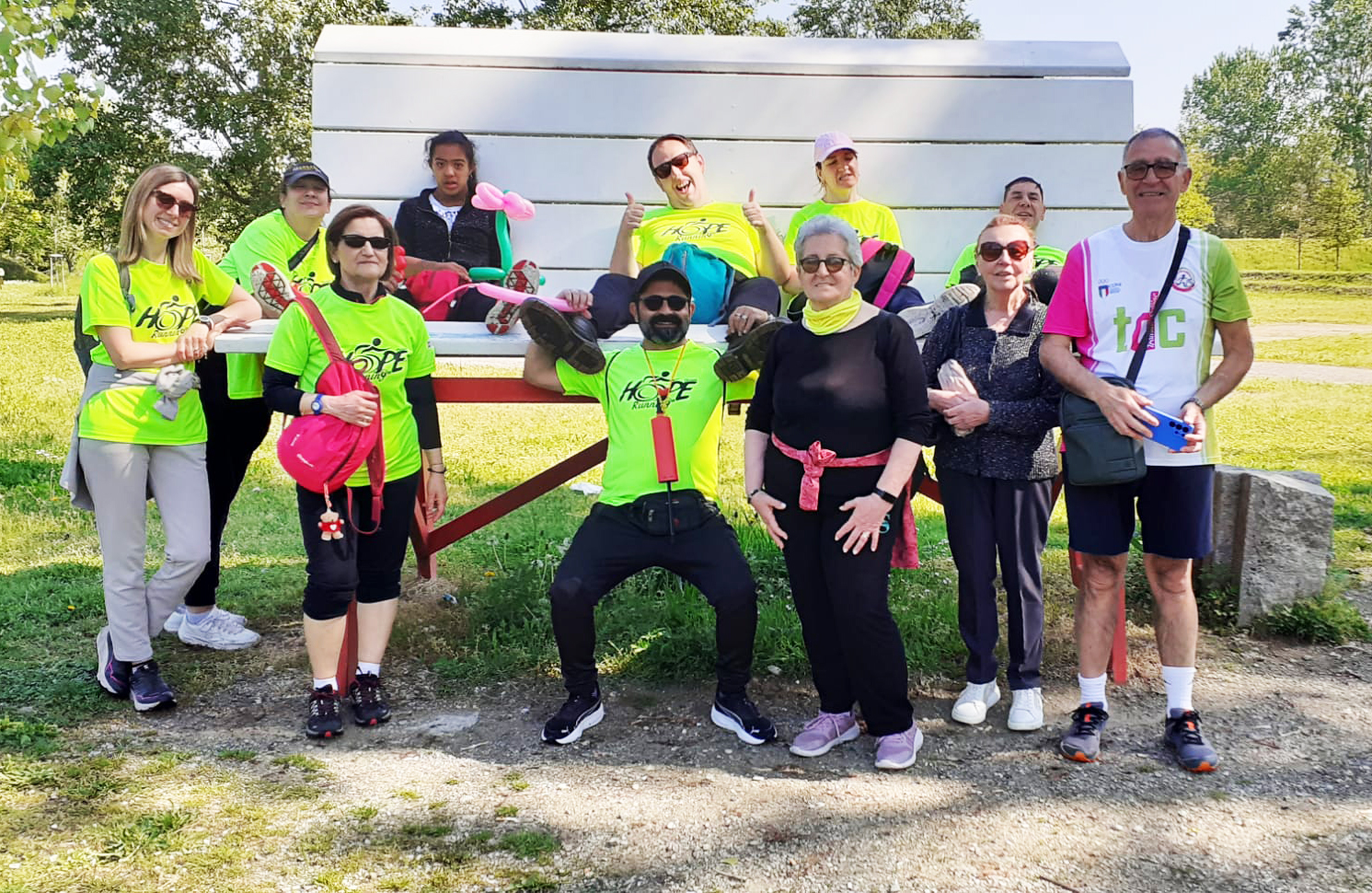 CHIVASSO - Una mattinata all’aria aperta, tra natura e inclusione. Prosegue, tutti i giovedì, nei parchi Bricel e Sabiunè, il progetto che vede prendere vita una camminata speciale che ha come protagonisti i ragazzi e le ragazze del Centro Diurno “Handirivieni” del CISS - Consorzio Intercomunale Servizi Sociali Chivasso, servizio curato dalla Cooperativa Animazione Valdocco, accompagnati dalle loro instancabili operatrici e dalle magliette gialle della Hope Running. Un’occasione per condividere il piacere del movimento, dello stare insieme e della scoperta del territorio. Tra sentieri alberati, spazi verdi, scorci suggestivi, i partecipanti hanno porto un saluto agli “Amici del Po – Chivasso, si sono divertiti con bolle di sapone e autentiche opere d’arte create con i palloncini gonfiabili. Ogni passo diventa simbolo di partecipazione e libertà: ogni partecipante è protagonista e ogni piccolo grande traguardo, come l'approdo sulla Grande Panchina n. 270, è fatto di sorrisi, incontri e piccoli grandi momenti di condivisione. Il trekking leggero vuole essere un messaggio concreto di inclusione, il movimento e la natura come strumenti per abbattere barriere, ma allo stesso tempo un invito a vivere i parchi di Chivasso con occhi nuovi: la diversità diventa ricchezza e la condivisione il vero punto di arrivo.
